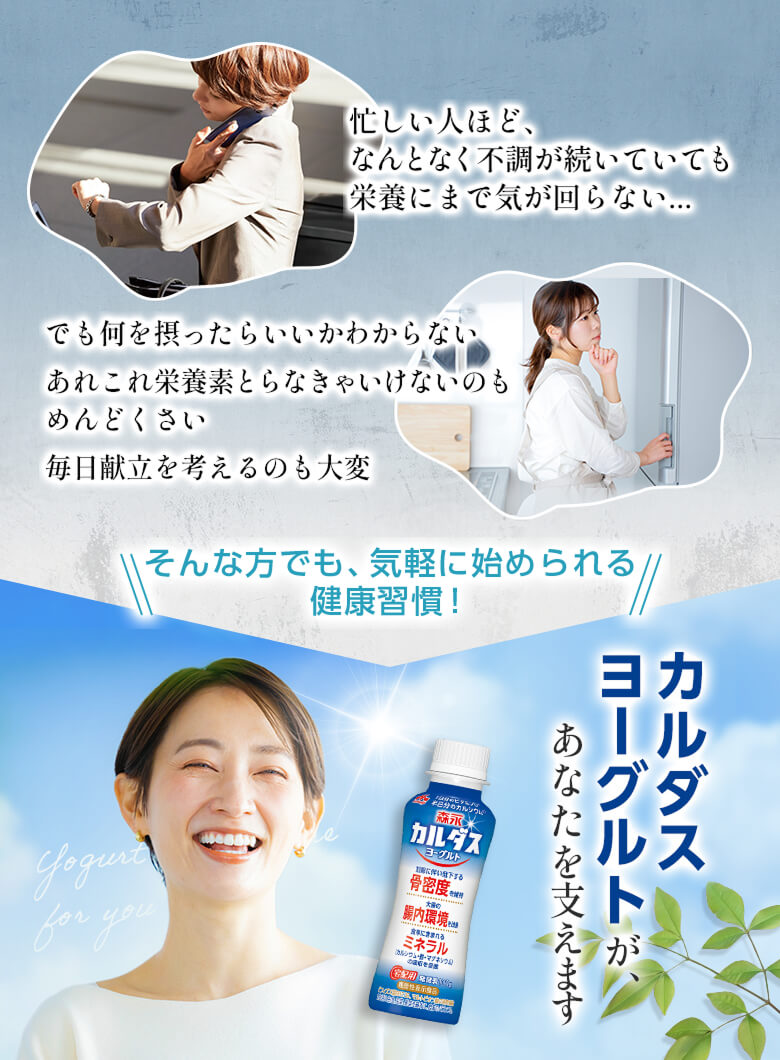 骨と腸をサポートする「森永カルダスヨーグルト ドリンクタイプ」、ぜひ森永乳業の宅配サービスをご活用いただき、継続してお飲みください。
